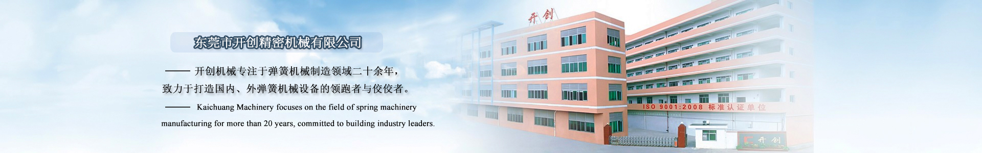 東莞市開(kāi)創(chuàng)精密機(jī)械有限公司(簡(jiǎn)稱(chēng)"開(kāi)創(chuàng)機(jī)械")是中國(guó)機(jī)械工程學(xué)會(huì)彈簧技術(shù)學(xué)組會(huì)員,公司成立于2003年,是一家集研發(fā)、設(shè)計(jì)、生產(chǎn)、銷(xiāo)售與服務(wù)于一體的彈簧設(shè)備生產(chǎn)型企業(yè),是目前國(guó)內(nèi)自主開(kāi)發(fā)數(shù)控彈簧機(jī)種類(lèi)最完善、覆蓋廣的彈簧機(jī)械制造廠家之一。其中,主導(dǎo)機(jī)型涵蓋了線徑φ0.15-20.0mm之間二十多種不同型號(hào)的電腦彈簧機(jī)產(chǎn)品,比如數(shù)控高速卷簧機(jī)(常規(guī)壓簧機(jī)與多軸壓簧機(jī))、數(shù)控萬(wàn)能彈簧機(jī)(常規(guī)八爪彈簧機(jī)與轉(zhuǎn)線彈簧機(jī))與無(wú)凸輪彈簧機(jī)(包括十軸至十四軸無(wú)凸輪機(jī))等數(shù)控彈簧機(jī)設(shè)備,近年新上市機(jī)型KCT-1008深受客戶喜愛(ài),并配套有多種型號(hào)的全自動(dòng)送線架以及彈簧機(jī)刀具/配件等 。